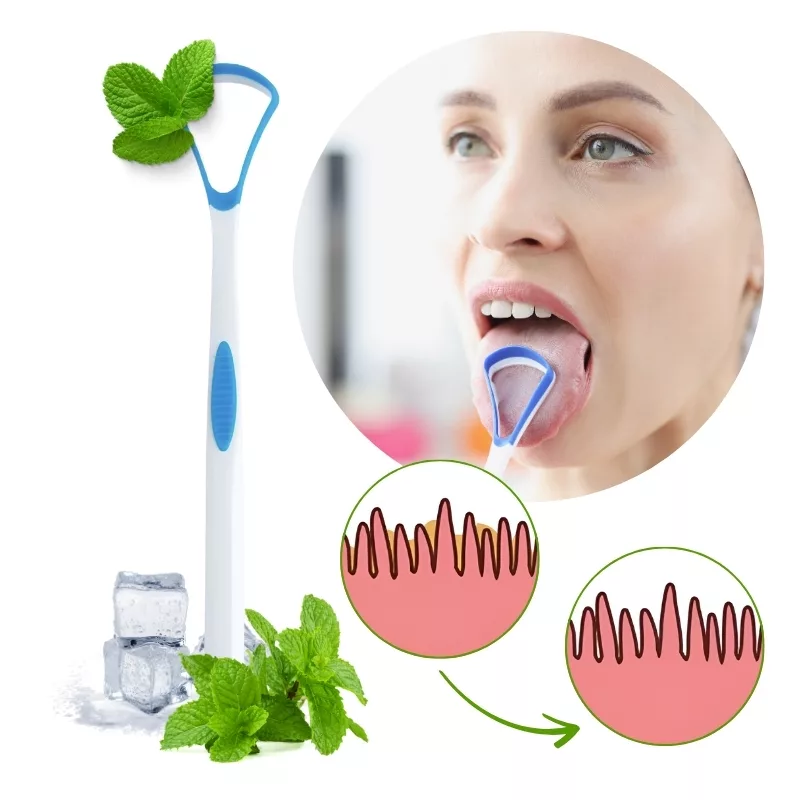 Onze tongschraper kan elk gebied gemakkelijk bereiken, zodat geen plek wordt gemist.