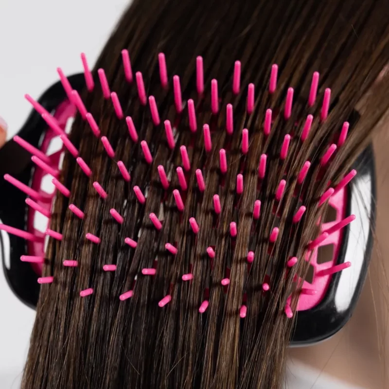 Onze haarborstel stimuleert de hoofdhuid, waardoor de bloedtoevoer en celactiviteit toenemen. Dit bevordert de toevoer van essentiële voedingsstoffen naar de wortels, wat cruciaal is voor hun kracht.