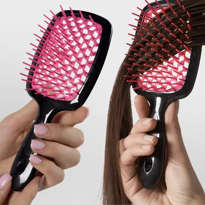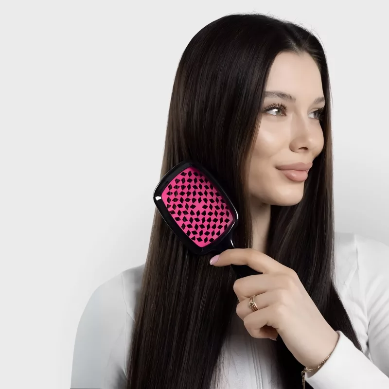 Deze ontwarrende borstel maakt elektrische haardrogers overbodig. Het laat lucht gemakkelijk doorstromen, waardoor de stylingtijd aanzienlijk wordt verkort.