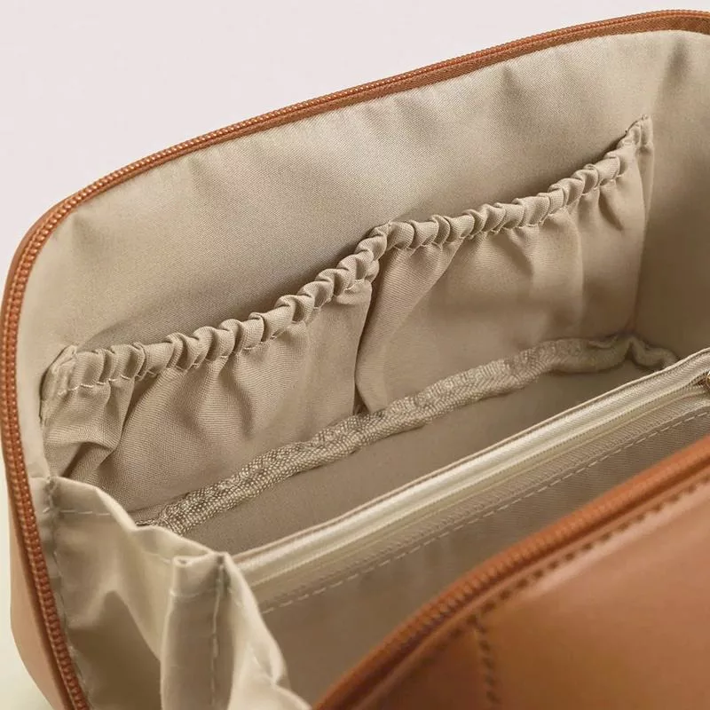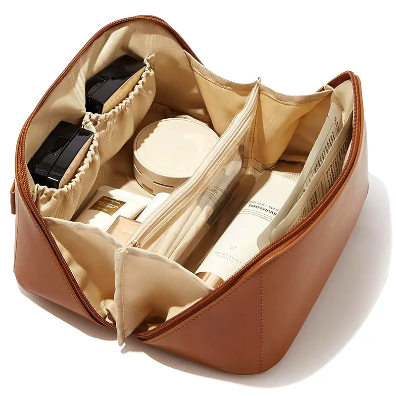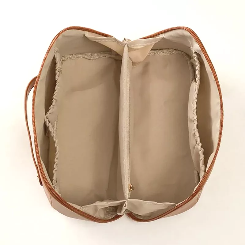 Onze tas laat je items gemakkelijk sorteren, zodat je nooit tijd verspilt met graven. Er is genoeg ruimte voor kwasten, flessen en make-up. Het vermindert rommel, waardoor elke routine sneller en soepeler verloopt.